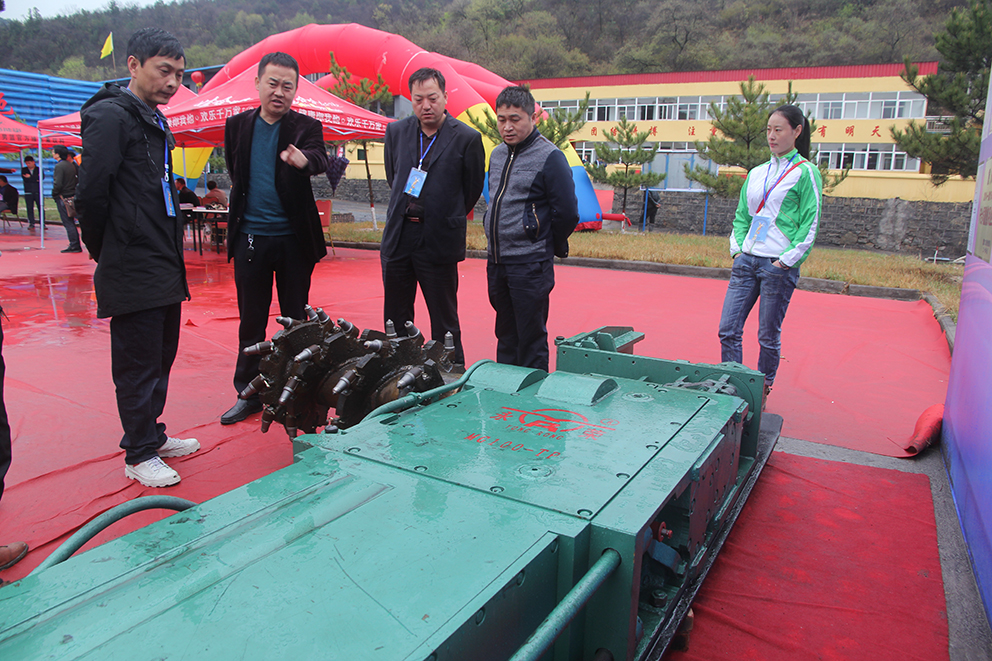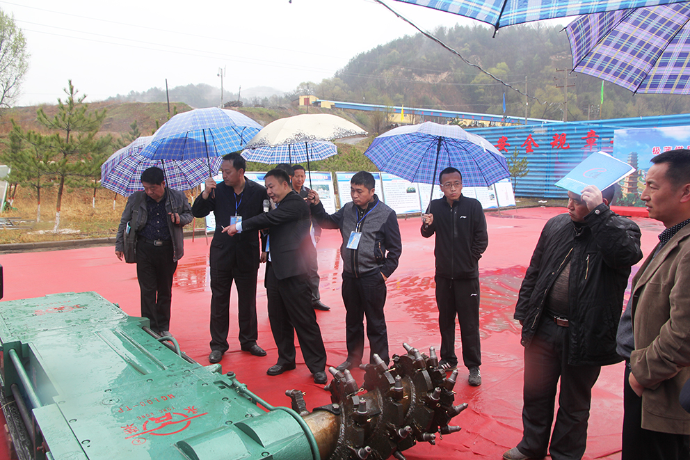現(xiàn)場(chǎng)會(huì)當(dāng)天,天空一直下著陣陣春雨,會(huì)議現(xiàn)場(chǎng)積滿雨水、道路變得泥濘,但這些并未影響大家學(xué)習(xí)交流的熱情。田局長(zhǎng)、各相關(guān)部門負(fù)責(zé)人及延安市25個(gè)煤礦負(fù)責(zé)人陸續(xù)抵達(dá)安喆煤礦,現(xiàn)場(chǎng)會(huì)如期舉行。在寶貴的春雨中,永榮機(jī)械公司銷售經(jīng)理陳明科現(xiàn)場(chǎng)為大家介紹了MG100-TP型極薄煤層采煤機(jī)的工作原理、性能及售后服務(wù),并請(qǐng)?jiān)趫?chǎng)的領(lǐng)導(dǎo)、專家、煤礦負(fù)責(zé)人多提寶貴意見,希望通過大家的不斷鞭策與支持,不斷提升設(shè)備的實(shí)用性、可靠性和先進(jìn)性,以更加高品質(zhì)的服務(wù)為煤礦安全、高效生產(chǎn)奉獻(xiàn)綿薄之力。之后,中國煤炭報(bào)記者孫楓凱對(duì)陳經(jīng)理進(jìn)行了訪談,對(duì)該采煤機(jī)的使用范圍、推廣情況進(jìn)行了詳細(xì)的了解。
