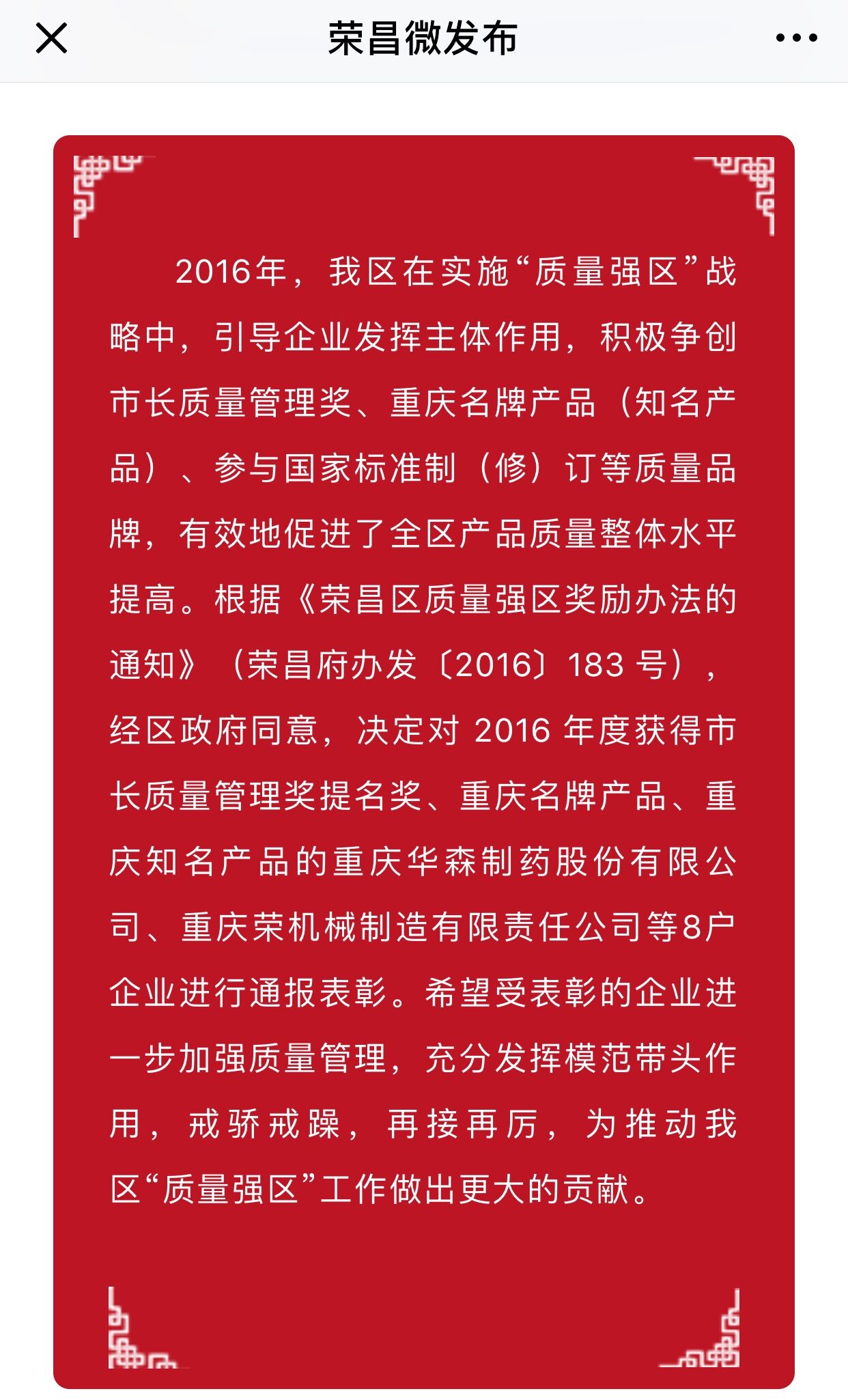永榮機(jī)制公司獲“質(zhì)量強(qiáng)區(qū)獎(jiǎng)”