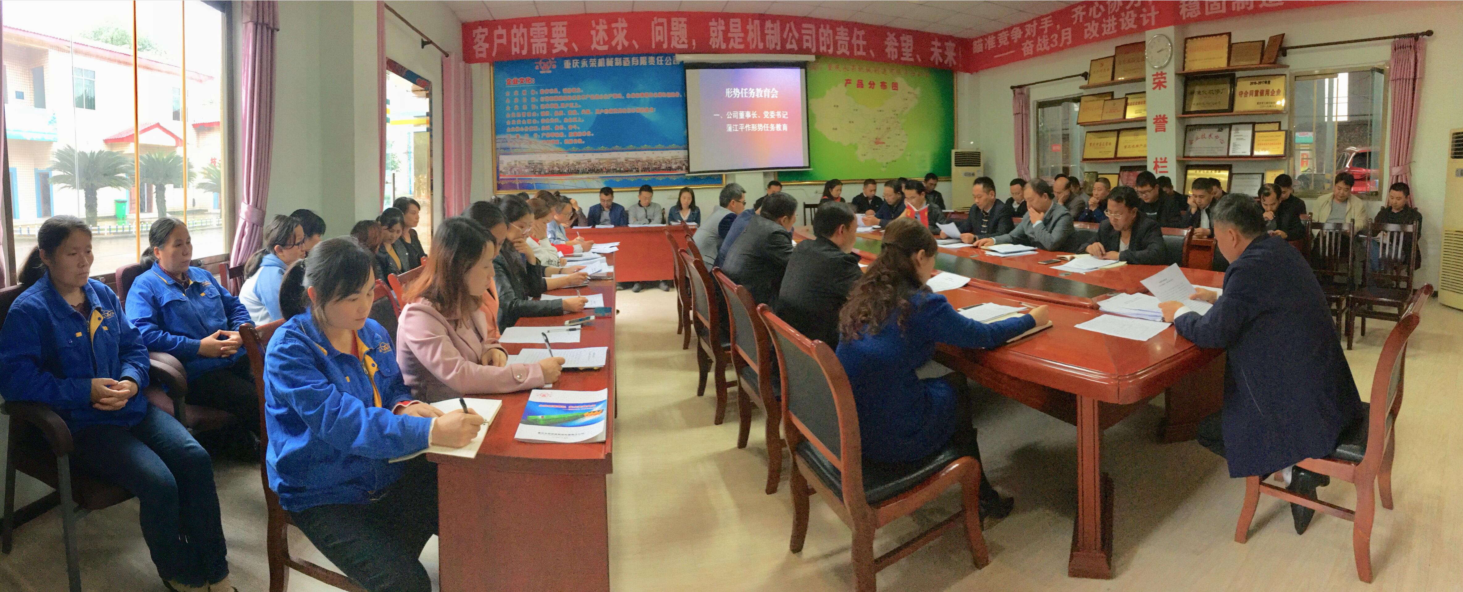 2019年10月21日,機(jī)制公司開展形勢(shì)任務(wù)教育,公司董事長(zhǎng)蒲江平同志作形勢(shì)任務(wù)報(bào)告,監(jiān)事會(huì)主席黃清華同志作重要講話 。
