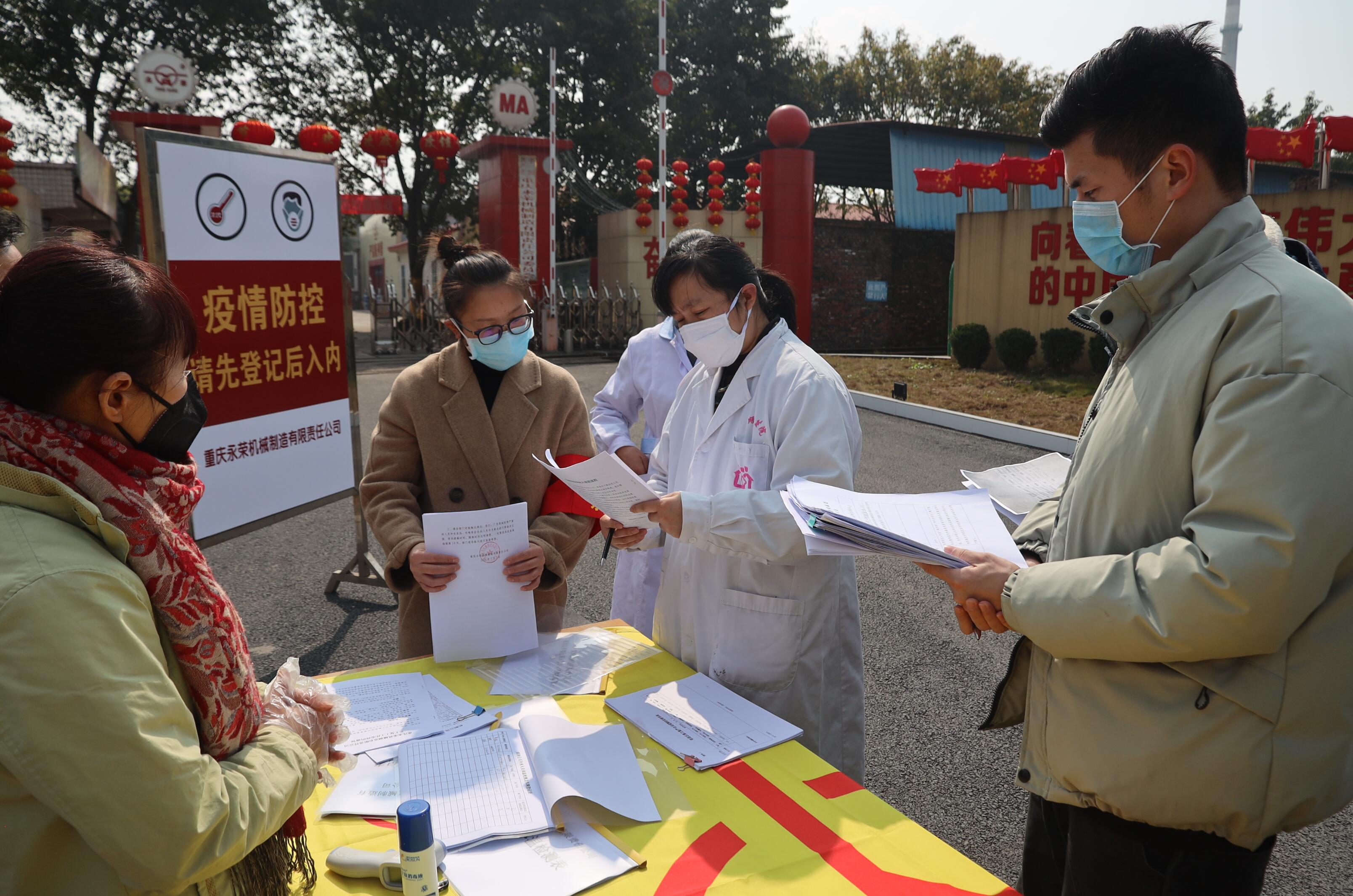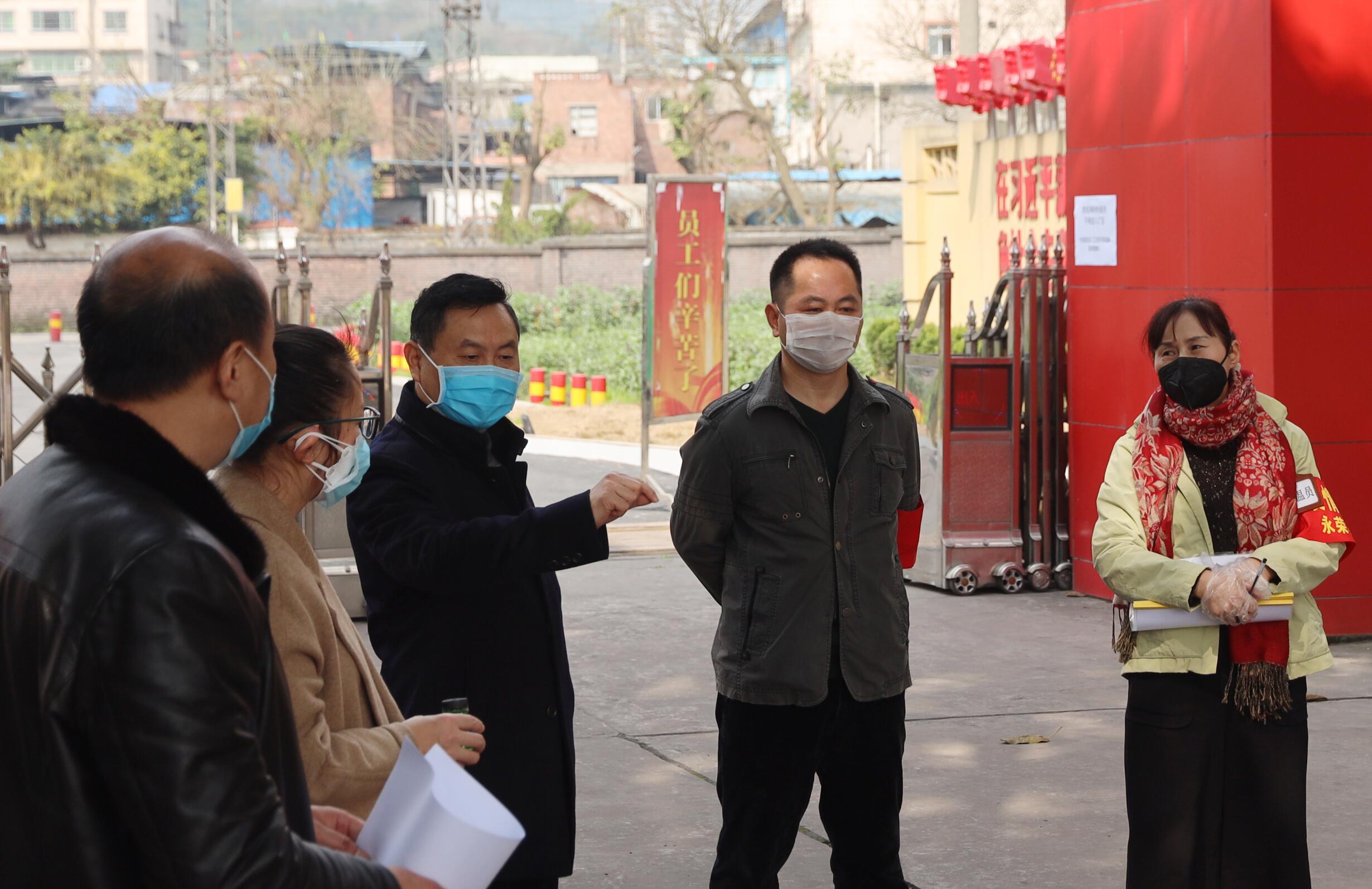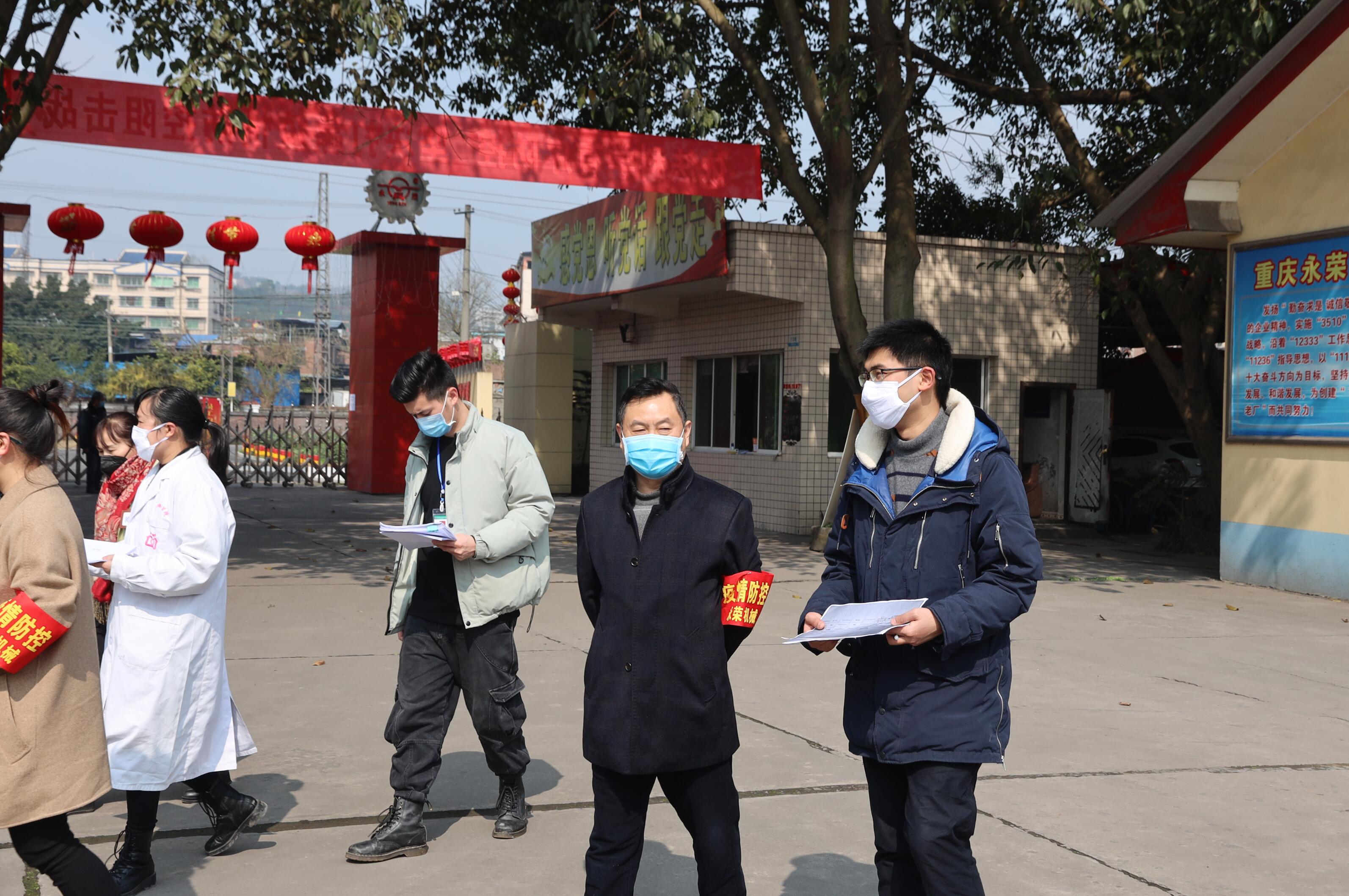 2020年2月11日下午,榮昌區(qū)經(jīng)信委唐溢會(huì)同昌元街道、廣順街道、雙河街道社區(qū)衛(wèi)生服務(wù)中心科長(zhǎng)一行四人來(lái)到重慶永榮機(jī)制公司執(zhí)行企業(yè)復(fù)工驗(yàn)場(chǎng),該公司董事長(zhǎng)、黨委書(shū)記蒲江平到廠接受驗(yàn)收檢查。