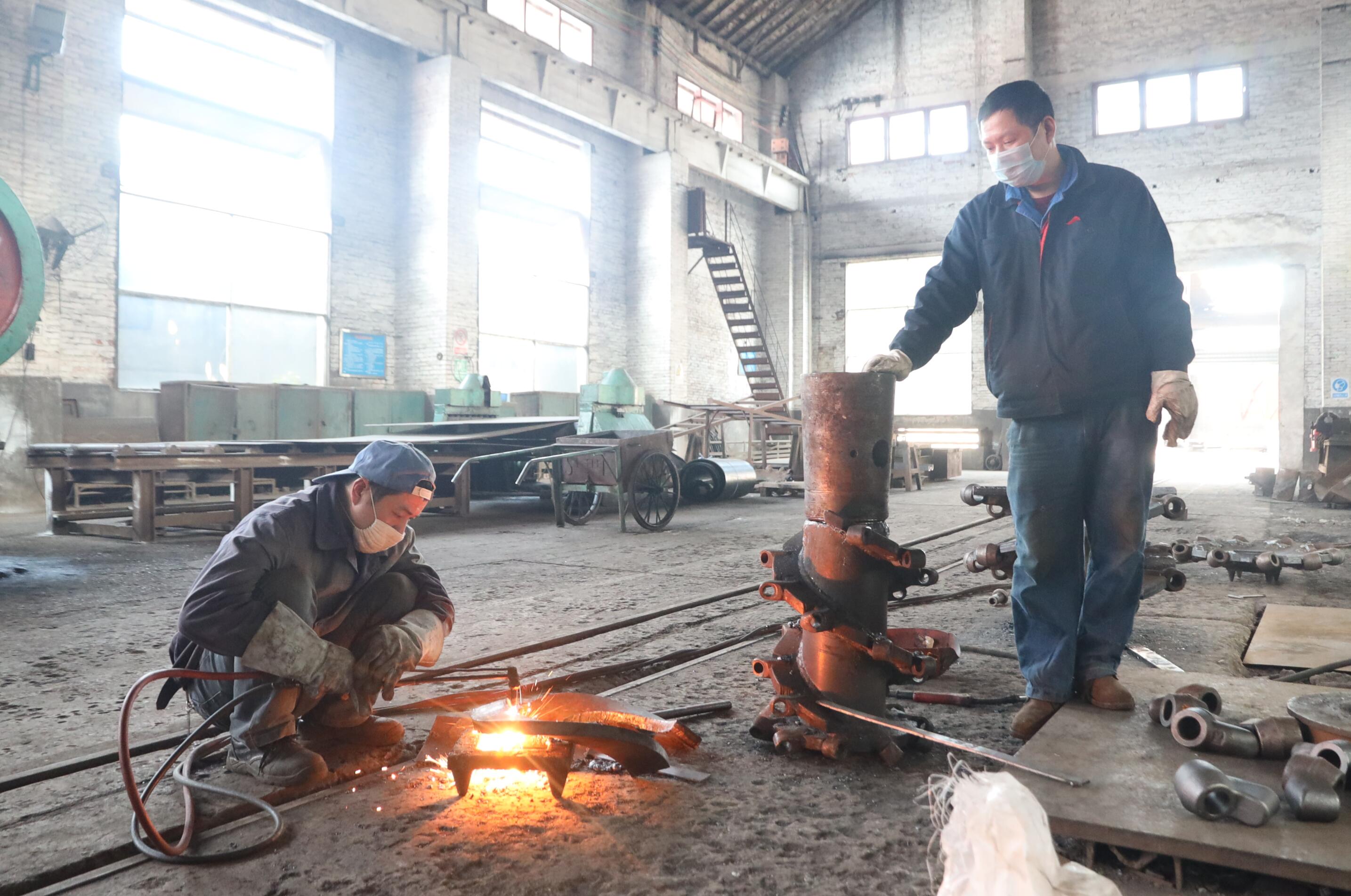 2020年2月12日,永榮機制公司在獲得復工許可后嚴格按照疫情防控要求,以“最小化”方式運行,實行部分員工現(xiàn)場復工和居家辦公相結合,盡量減少人員流動和人員聚集。(圖為復工第一天員工入廠體溫檢測、發(fā)放口罩和車輛消毒)
