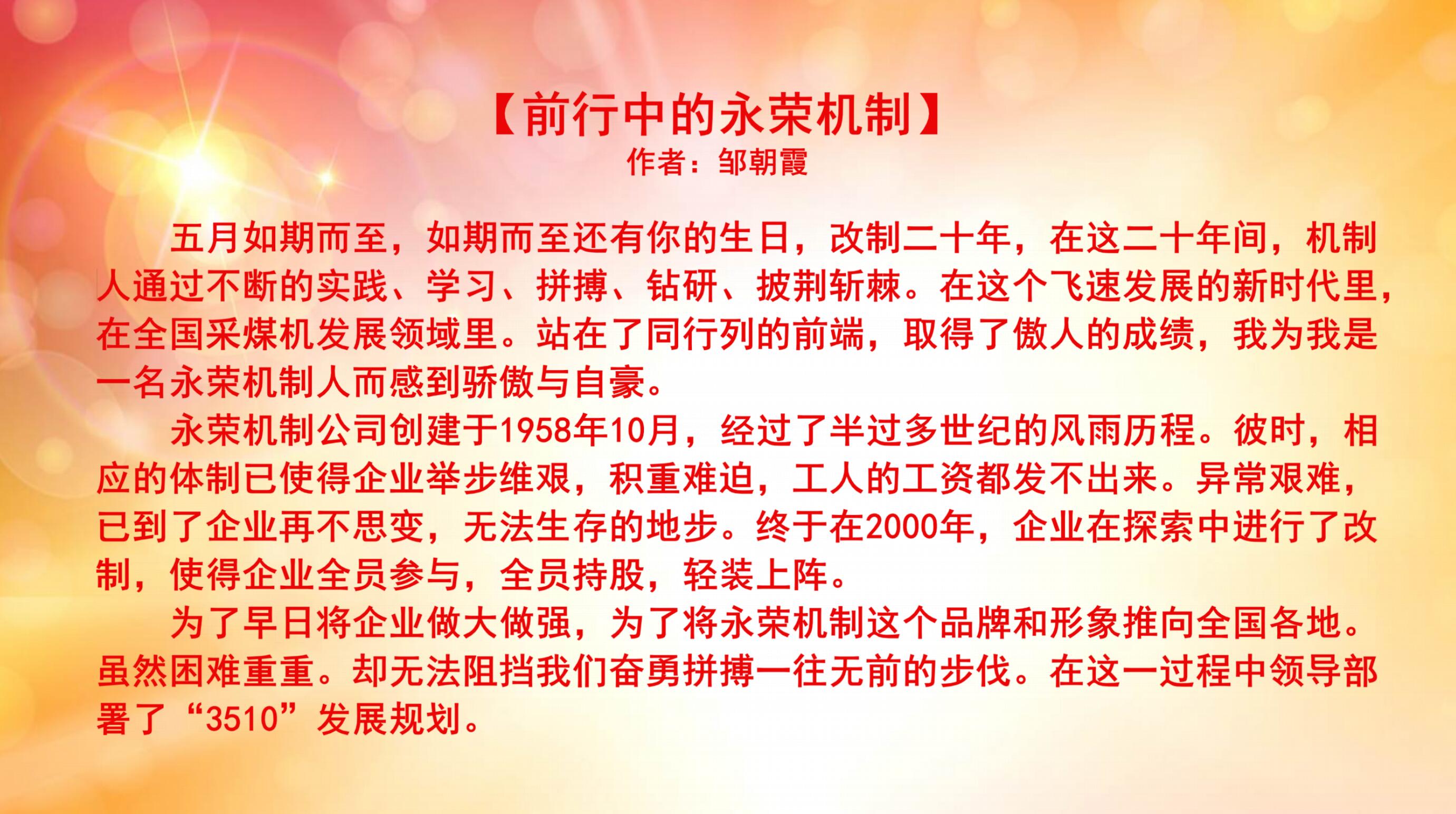 上一篇:慶祝永榮機制公司改制20周年優(yōu)秀文學作品展